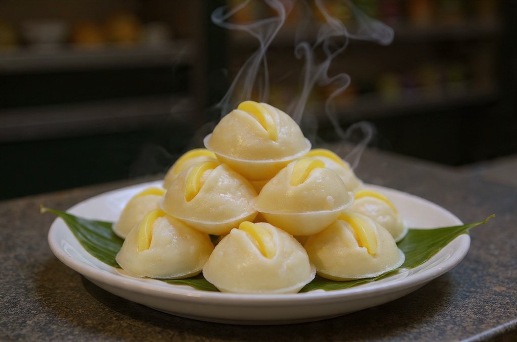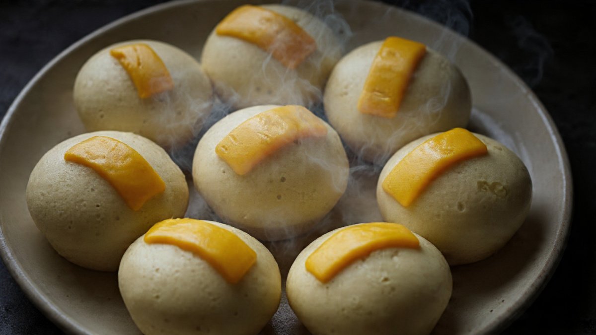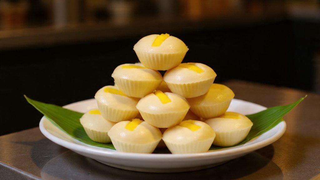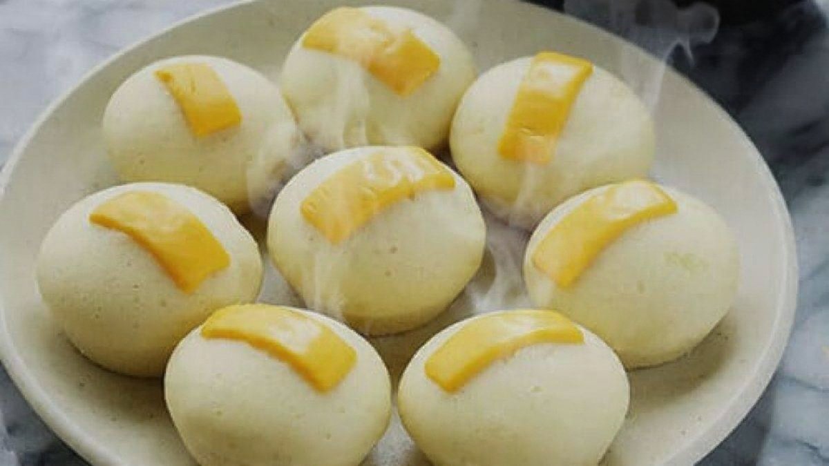Each piece is light and fluffy, crafted to perfection. The addition of a cheese slice on top adds a savory touch, balancing the subtle sweetness of the cake for a unique and harmonious flavor.