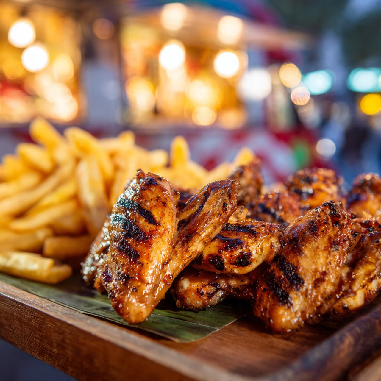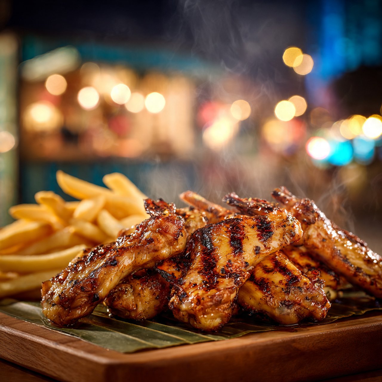 These grilled chicken wings are seasoned with just the right blend of spices and grilled to lock in tenderness. Paired with crunchy fries fresh out of the fryer, this duo is a versatile choice for dinner, parties, or a quick indulgence at home. Be prepared for a meal that’s nothing short of extraordinary!